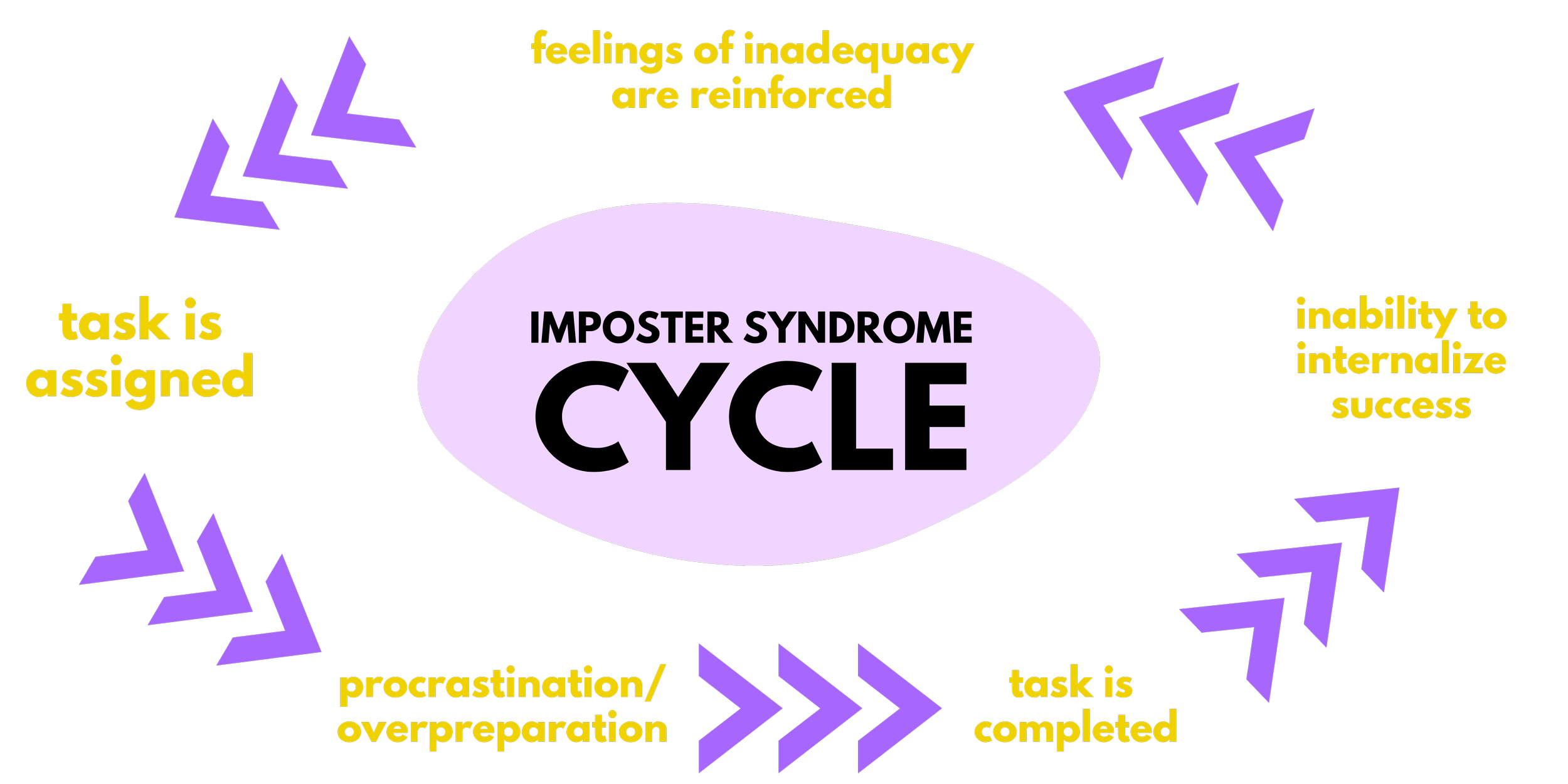 The imposter “syndrome” is often experienced in a cyclical fashion, in which the individuals suffering from it are assigned an achievement-based task, and once they accomplish the task, despite whatever positive feedback they may receive, they attribute their success to either hard work or good luck, but never to their own ability. Because these individuals aren’t able to internalize their own success, these beliefs reinforce themselves the next time they’re assigned another achievement-based task.